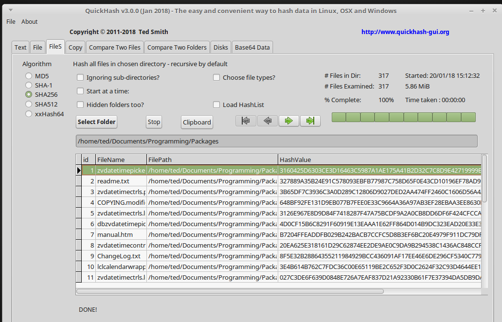 QuickHash v3.0.0 on Linux Mint By Ted|January 20th, 2018|0 Comments Tell your friends about QuickHash! Just choose your social platform! FacebookXLinkedInWhatsAppEmail About the Author: Ted Leave a ReplyCancel reply This site uses Akismet to reduce spam. Learn how your comment data is processed.